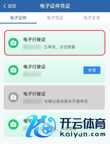 个东谈主用户登录“交管12123”App,点击首页“电子证件证据”功能,参加“电子证件”子功能。用户名下有天真车的,可点击电子行驶证右侧的【申领】按钮进行申领。