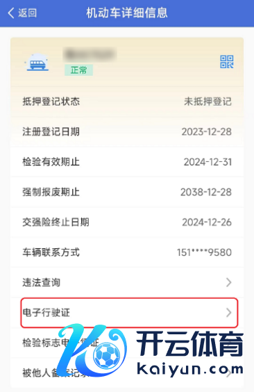 单元车辆切换到单元用户版后,在首页下方点击天真车列表项后,参加“天真车详备信息”页面,点击【电子行驶证】进行检讨。