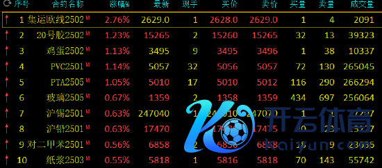 早盘开盘,国内期货主力合约涨跌不一。集运指数(欧线)涨超3%,20号胶(NR)、聚氯乙烯(PVC)、PTA涨超1%。跌幅方面,棕榈油跌超1%,沪锌、豆二、沪铝跌近1%。