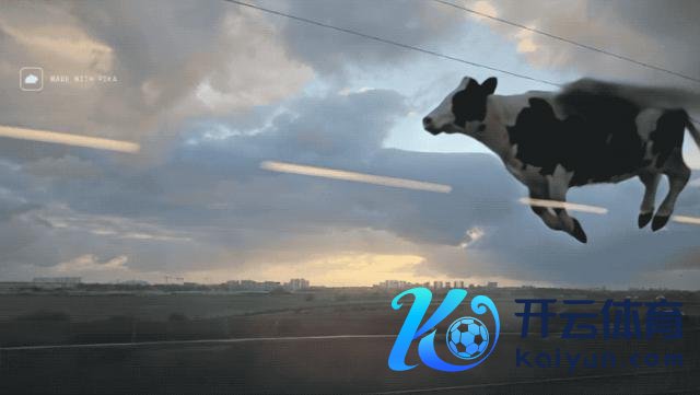 有一说一,这段 Prompt 照旧比拟普通的,并莫得刻意让奶牛在天上飞,是 AI 的好奇。