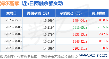 本站音信,8月11日,海尔智家(600690)融资买入6143.72万元,融资偿还4329.73万元,融资净买入1813.99万元,融资余额15.27亿元,近20个交游日中有13个交游日出现融资净买入。