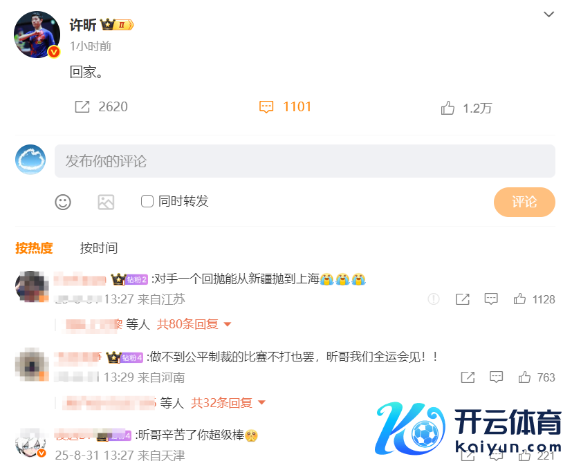 网友在评述区留言:“作念不到公说念制裁的比赛不打也罢,昕哥咱们全运会见!!”