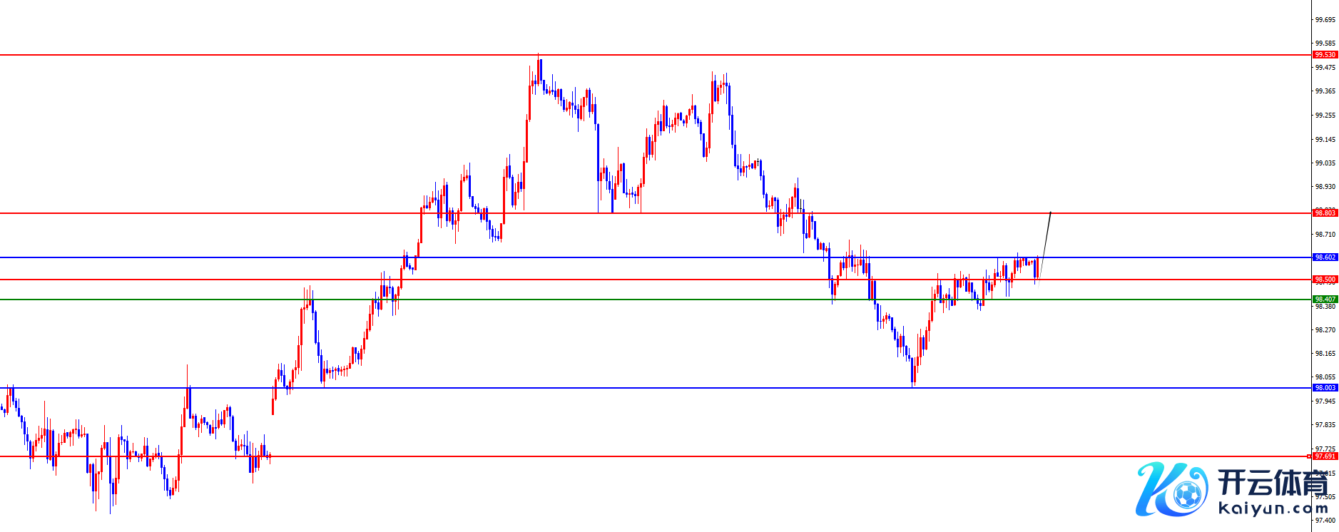 在好意思元指数的发达上,周一好意思元指数呈现出上升的态势。当日好意思元指数价钱最高攀升至98.623的位置,最低则下探至98.36位置,最终以98.598的价钱收盘。归来周一市荟萃座发达,价钱在早盘技能短线先震憾初始,随后欧盘前依托四小时相沿再度上升,而况最终当天大阳气象驱散。