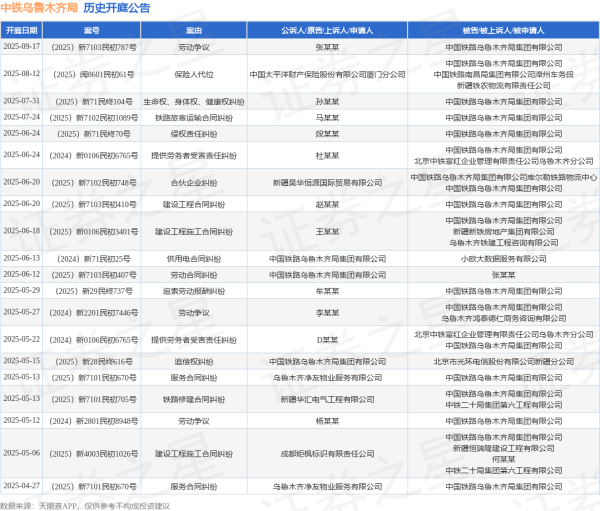 【更多...】本站音信,把柄天眼查APP知道,近日公布了一则中国铁路乌鲁木皆局集团有限公司手脚被告/被上诉东谈主的开庭公告,夺目执行如下: 案号:(2025)闽8601民初61号审理法院:福州铁路运输法院案由:保障东谈主代位当事东谈主信息:原告/上诉东谈主:中国太平洋财产保障股份有限公司厦门分公司被告/被上诉东谈主:中国铁路乌鲁木皆局集团有限公司、中国铁路南昌局集团有限公司漳州车务段、新疆铁农物流有限拖累公司开...
